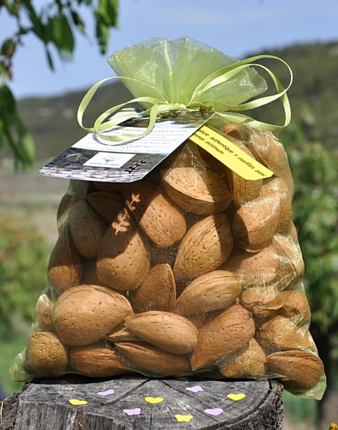 "Croquez ces amandes artisanales, vraiment délicieuses, du terroir local, récoltées et travaillées de main d'expert, par un artisan du cru".