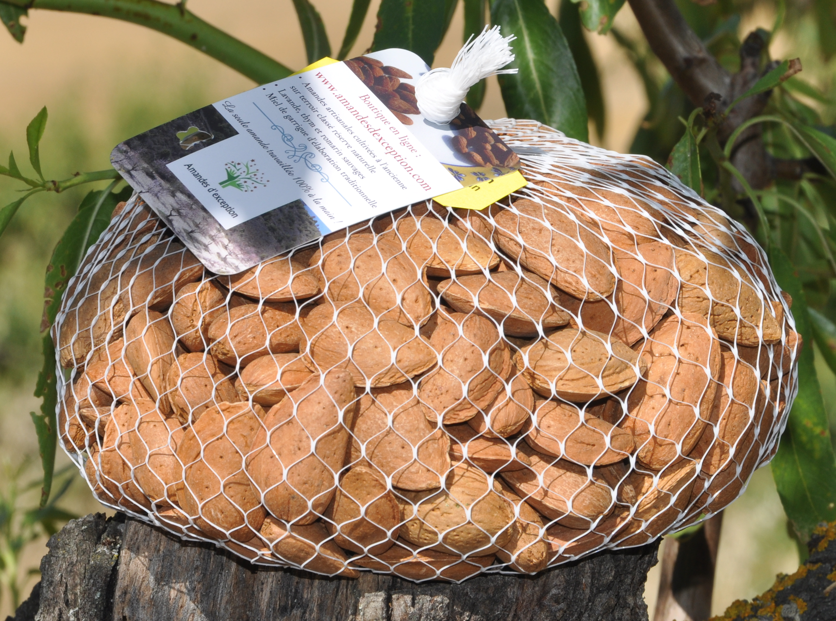 "Croquez ces amandes artisanales, vraiment délicieuses, du terroir local, récoltées et travaillées de main d'expert, par un artisan du cru".